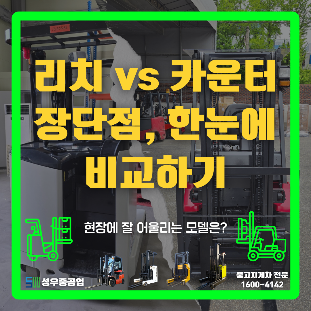 ❓ 리치지게차와 카운터지게차, 어떤 장비가 적합할까요?