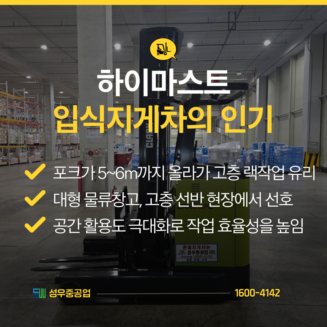 #입식지게차 #리치지게차 #하이마스트지게차 #중고지게차 #3단지게차 #지게차렌탈 #전동지게차 #지게차 #입승식지게차 #성우중공업