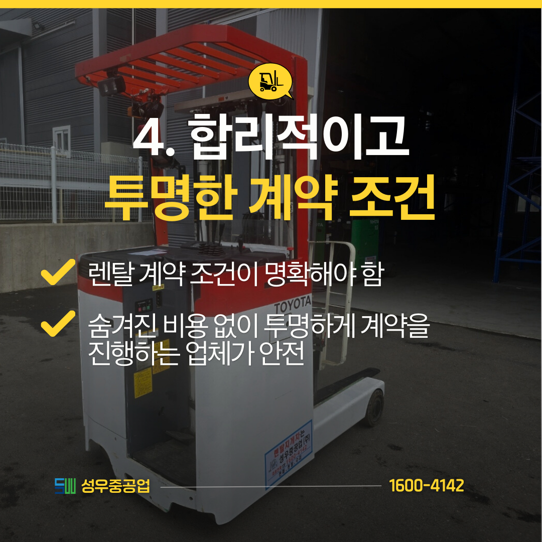배터리, 유압장치, 제동 장치 등 주요 부품의 상태를 투명하게 공개하는 업체가 신뢰할 만합니다.